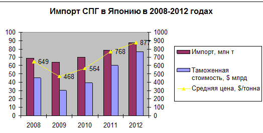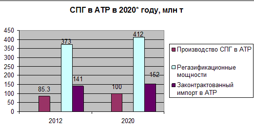 Проблем с регазификационными мощностями тоже нет. В 2012 году в АТР мощности в среднем использовались на 47% (174 млн т из 374 млн), а в Японии на 40% (87 млн т из 200 млн). Более того, уже сейчас в Азии строятся новые терминалы на 34 млн т, в том числе 5 в Японии, которые смогут принимать до 8 млн т в год.