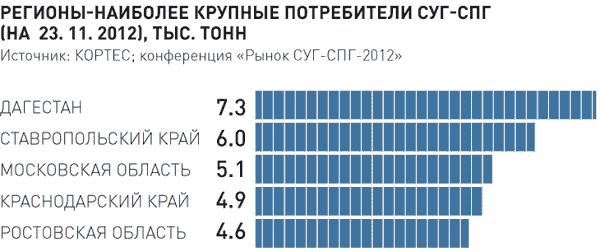 «Российская газета» сообщает, что регионы России с 2013 года будут газифицироваться с помощью сжиженных газопродуктов. Причем государство, сдерживая удорожание газификации, до 2014 года не выпустит на «рыночную свободу» внутренние цены на эту продукцию. Параллельно расширится автопарк на компримированном (сжатом) и сжиженном газе ввиду низких цен на это топливо (оно минимум на 25% дешевле бензина и дизтоплива). Но отечественных средств для перевозки и хранения газопродукции не хватает: в этой сфере преобладает импорт из дальнего зарубежья. Это основные выводы международной конференции «Рынок сжиженных газов в России и за рубежом», прошедшей в Москве.