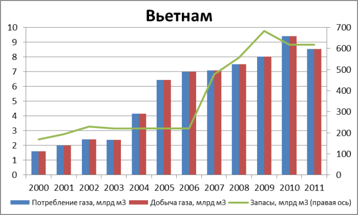 «Газпром» подписал соглашение о разделе продукции (СРП) по разработке двух блоков на шельфе Вьетнама в Южно-Китайском море. Российская компания получит 49% в блоках 05,2 и 05,3. В пределах участков уже открыты одно нефтяное месторождение и два газоконденсатных месторождения с запасами в 56 млрд куб. м газа и 25 млн тонн конденсата. Первый газ с месторождений поступит уже в июне 2013 года и будет реализован на внутреннем рынке Вьетнама.