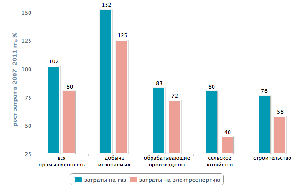 Минэкономразвития и Минпромторг проанализировали, как рост цен на газ с 2007 по 2011 годы сказался на конкурентоспособности основных отраслей российской экономики: